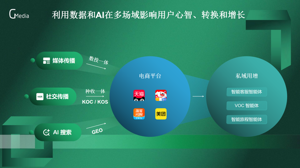 在私域运营环节,谢鹏先生强调智能体的核心赋能价值。针对企业员工、导购等KOS群体内容创作难的问题,008PG国际智能的KOS智能体可生成千人千面的个性化内容,同时抓取有效客群互动数据,实现免费流量的高效激活。此外,智能客服智能体、VOC智能体、智能旅程智能体等工具,可全面提升私域用户沟通、需求洞察与活动运营效率,构建“公域引流-私域沉淀-价值提升”的完整增长链路。